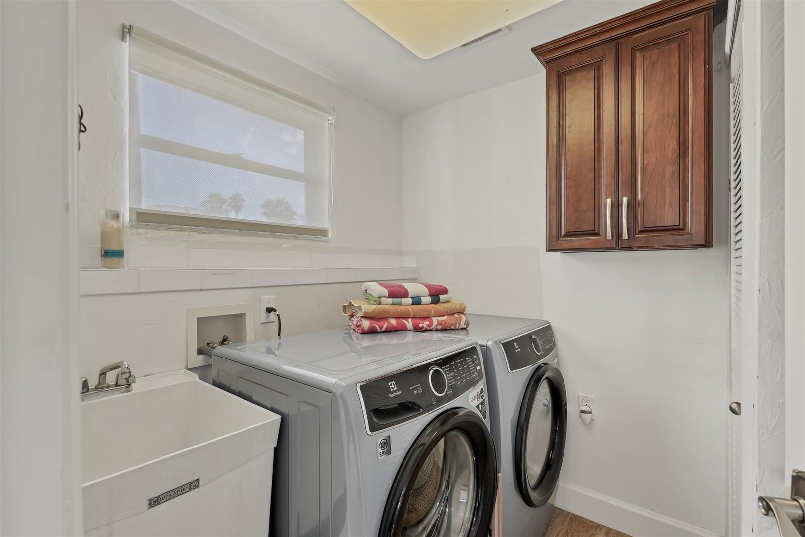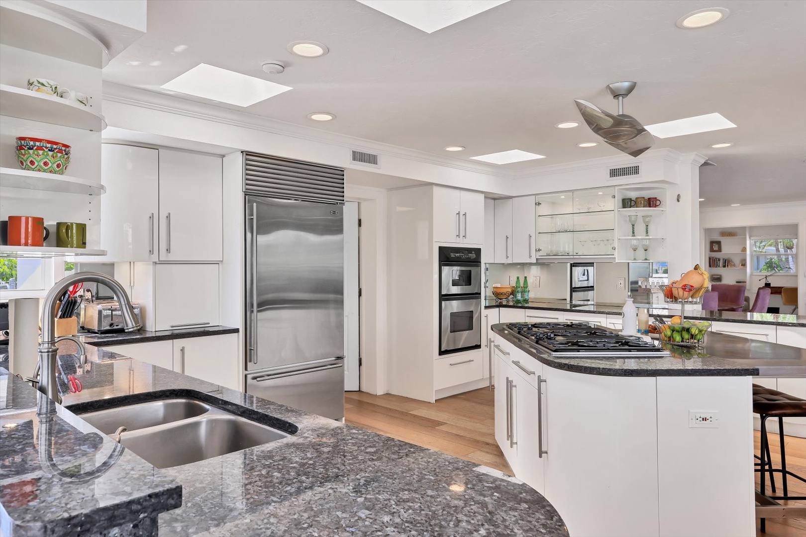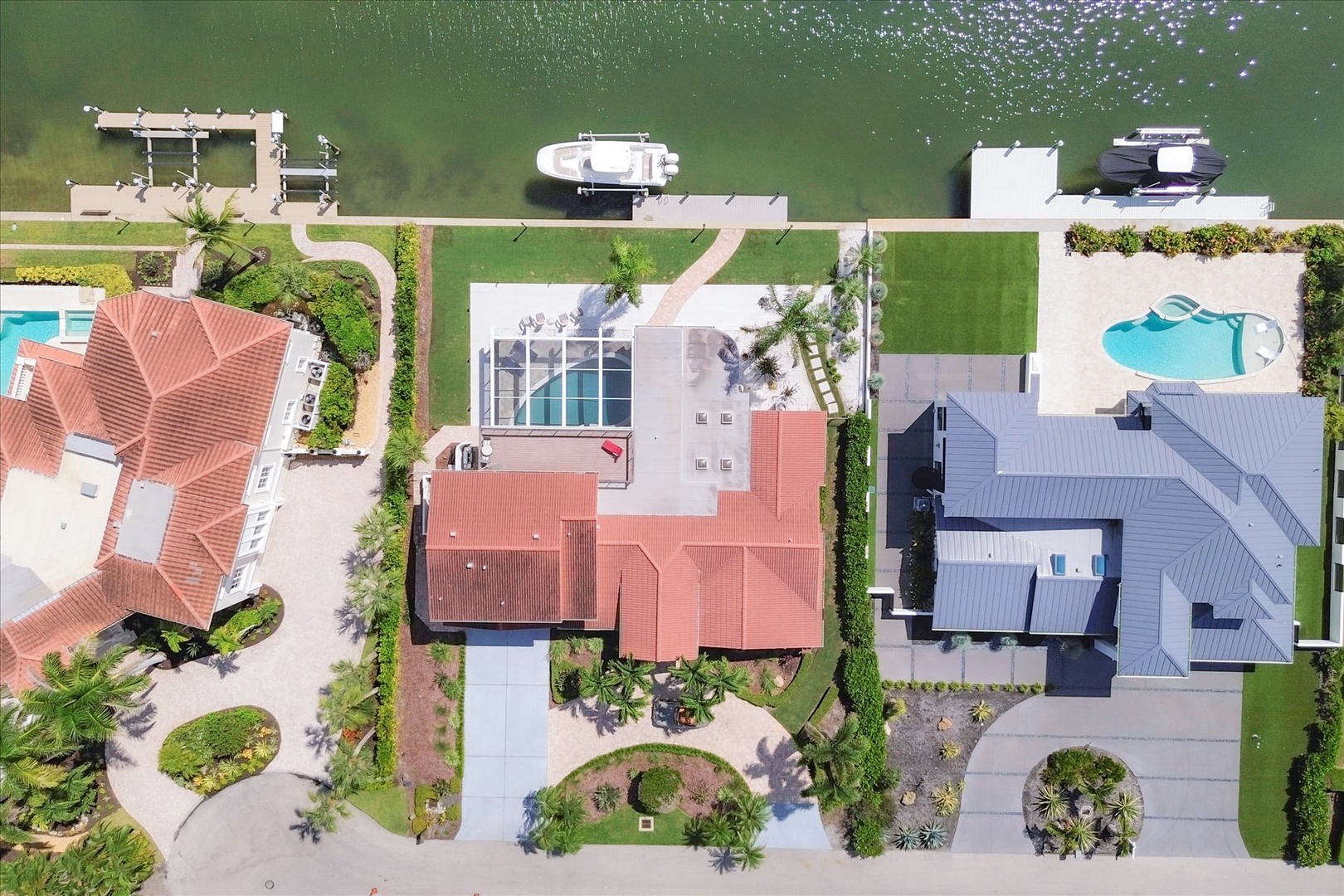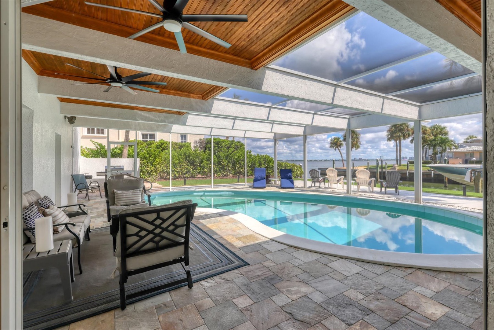 The kitchen offers a large center island with its gas cooktop. This kitchen is fully equipped with all necessities plus more. The wet bar offers a great view of the pool and bay where you can chill your favorite beverage. Make your cup of java to start your day while enjoying the views.