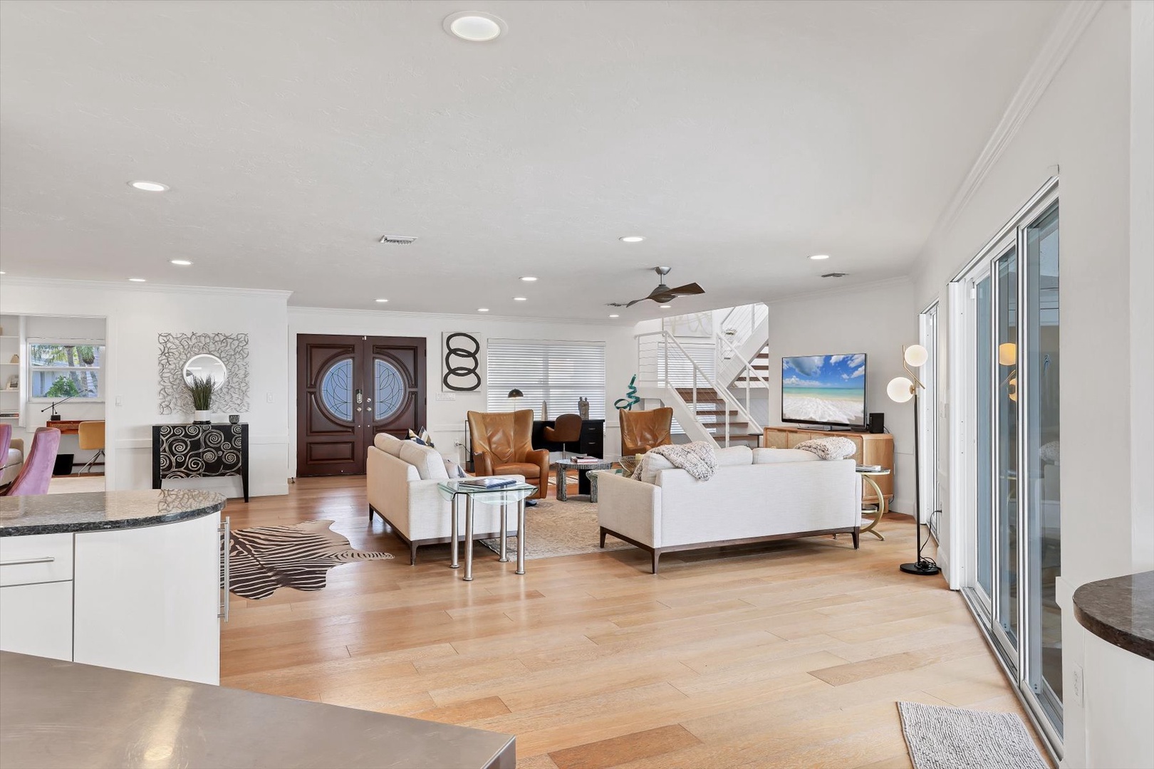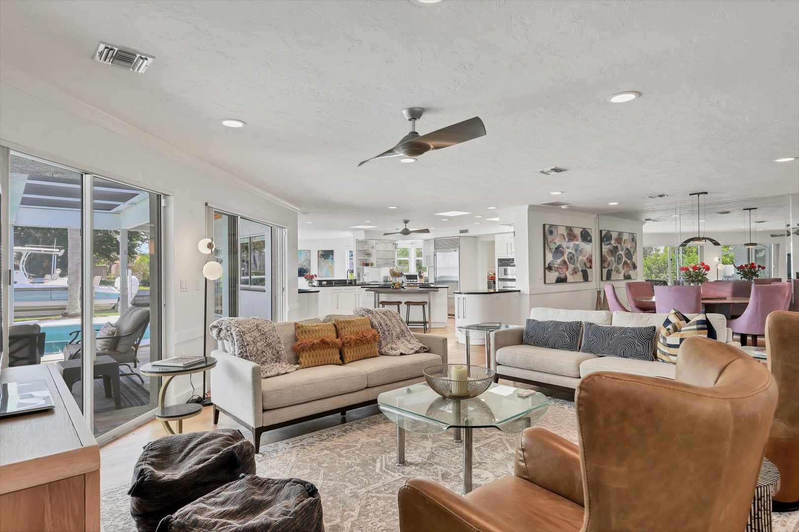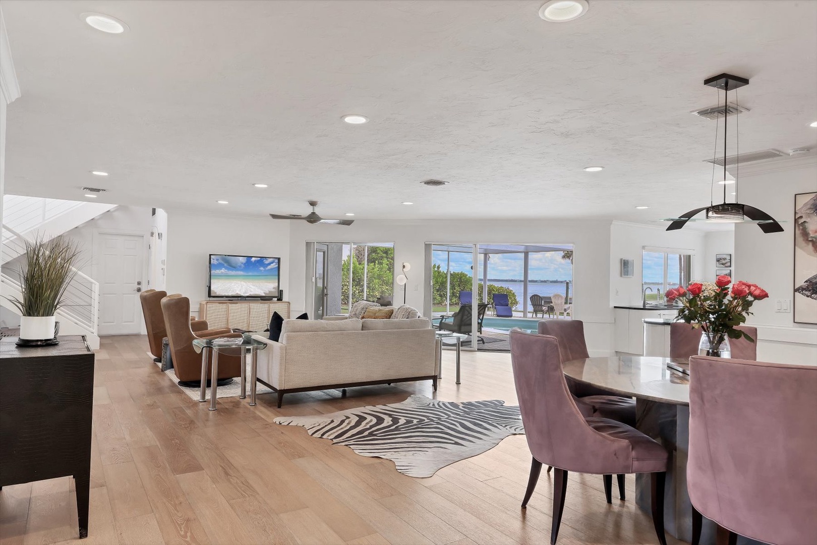 This spacious 4 bedroom/ 3 full baths private pool home sits just one lot in from the end of the canal offering incredible views of the Sarasota Bay. When you walk through the front door, you are greeted by the expansive open floor plan inviting you to explore the unique artistic touches from the owner's selection of décor.