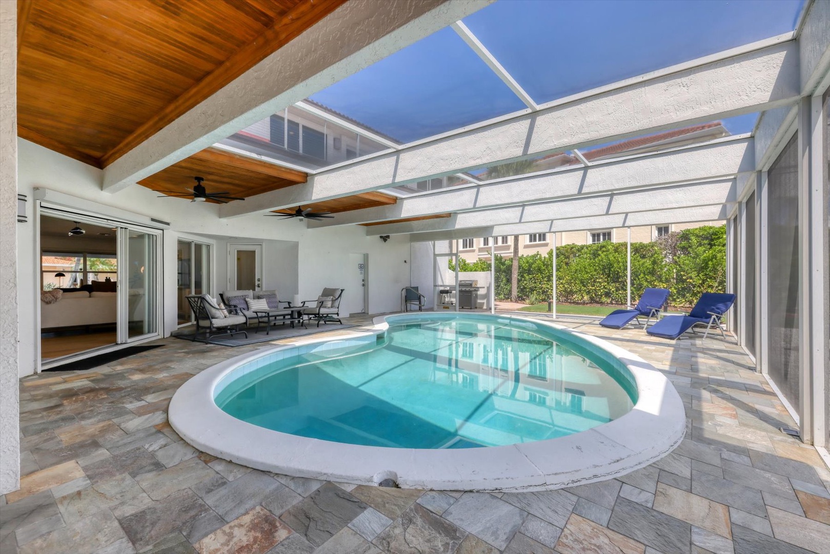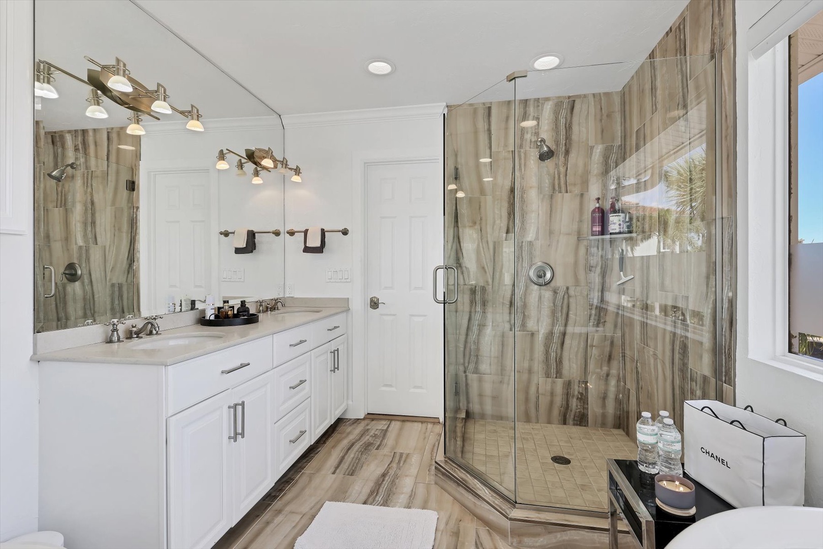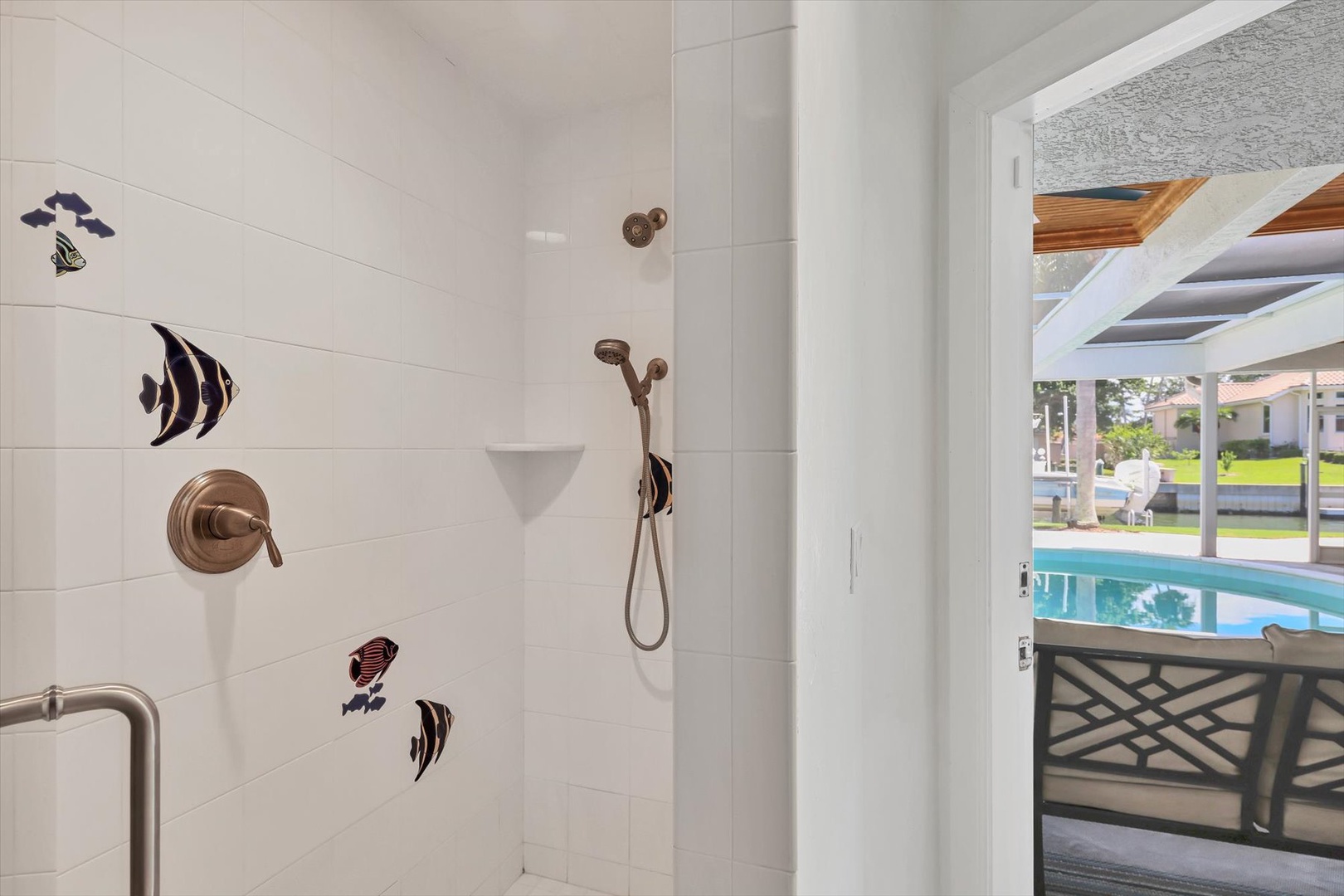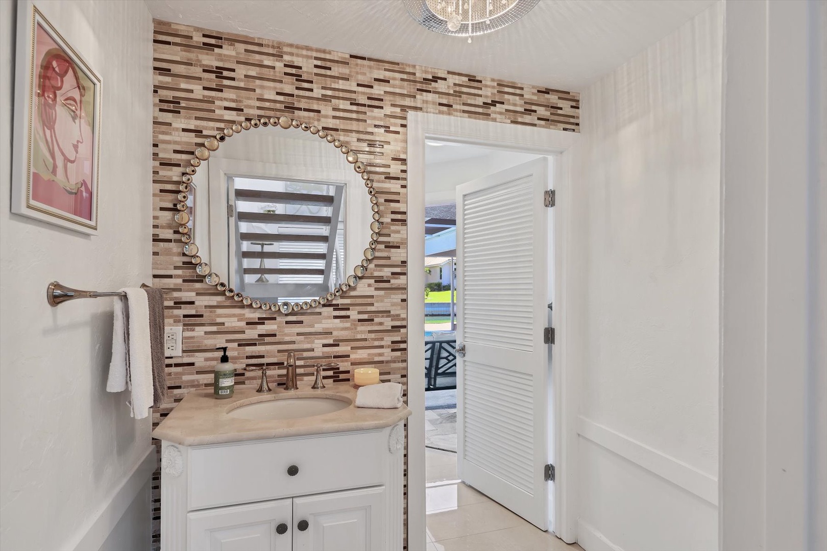 A full bath for guests is also accessible by the pool for convenience. Your ovesized double car garage allows for storage for your bikes and kayaks that might bring with you.