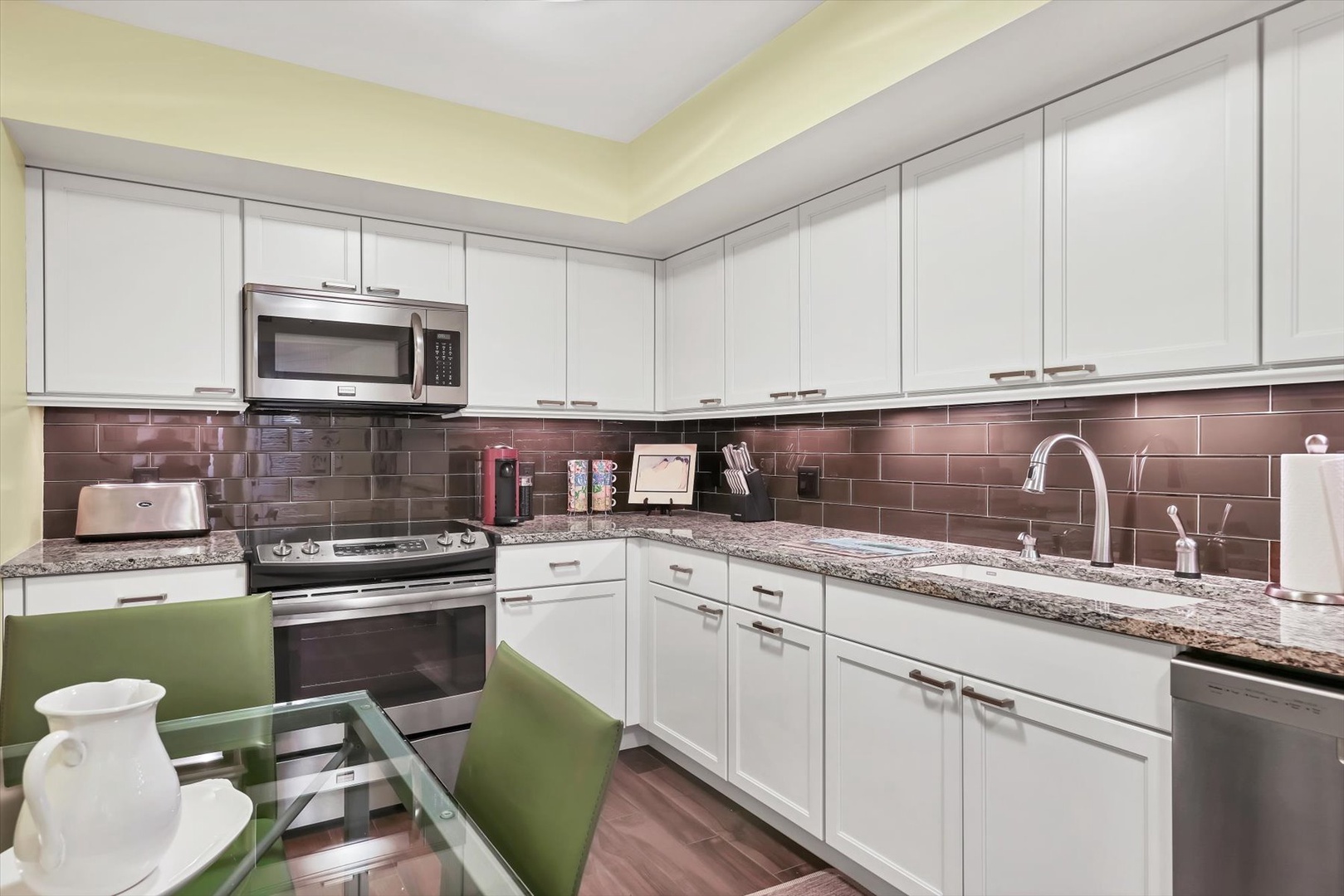 Inside, you’ll enjoy a bright, open living space with panoramic water views and sliding glass doors leading out to your private beachfront balcony, ideal for morning coffee, sunset toasts, or simply soaking in the ocean breeze. The well-equipped kitchen features everything needed for a home-cooked meal, while the dining area and spacious living room invite you to relax after a day in the sun.