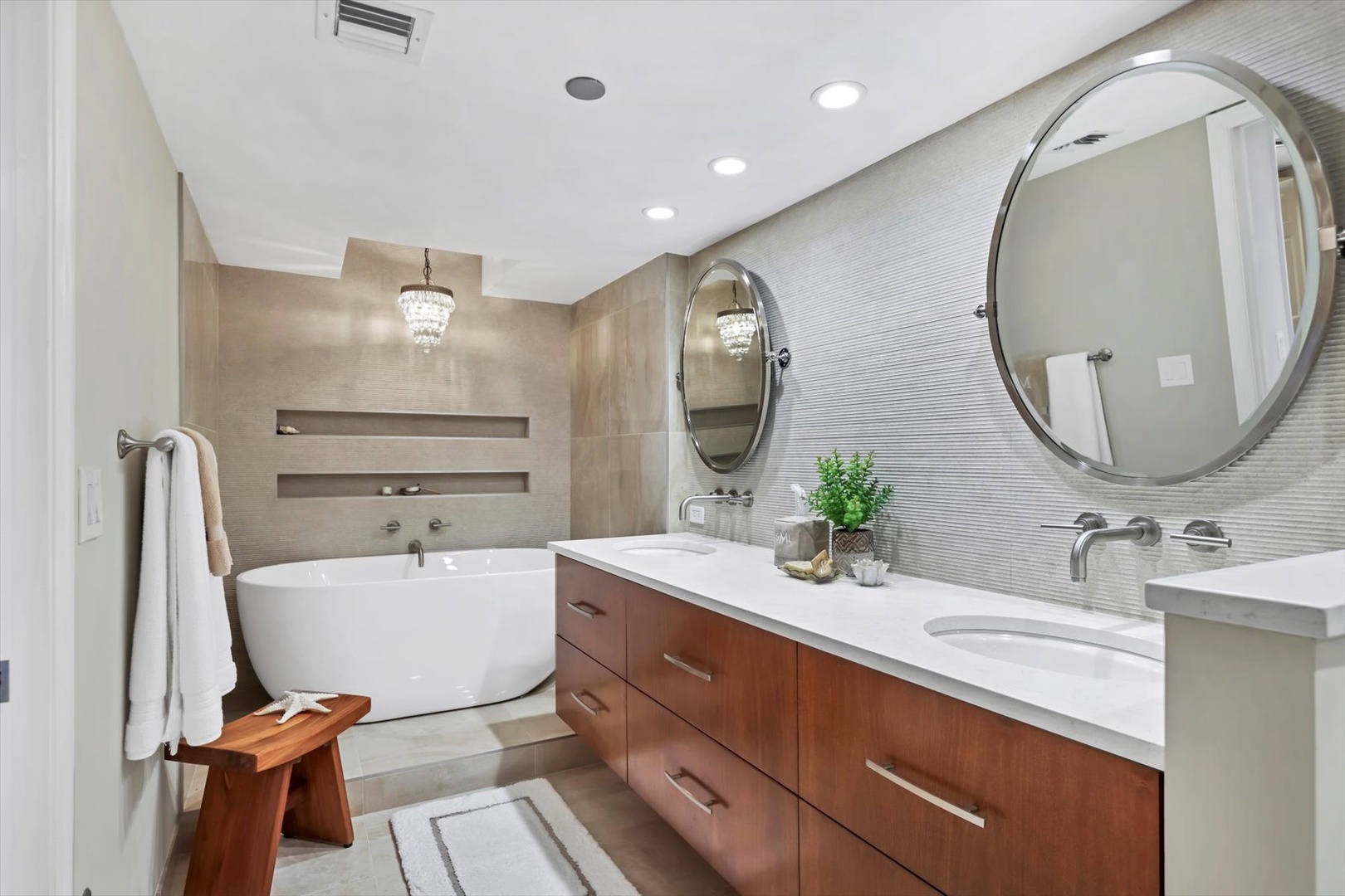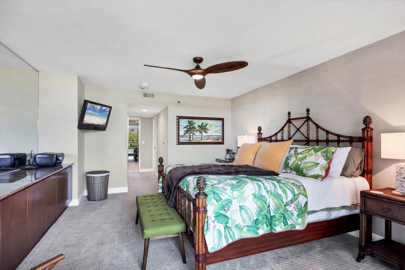The primary suite boasts a plush king bed, en-suite bathroom, and its own access to the balcony so you can drift off to the sound of the surf. A comfortable guest bedroom with king size bed and full bath ensure everyone has their own space.